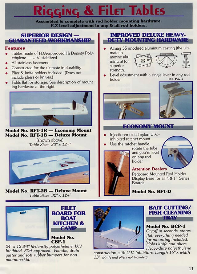 Economy Mount - 20" x 12" Deluxe Mount - 20" x 12" Deluxe Mount - 32" x 12" Filet Board Dealer Display (Free w/4 or more RFT models) Bait/Filet Board |