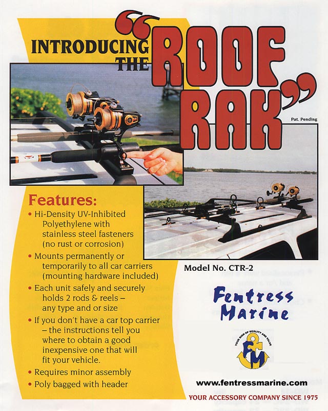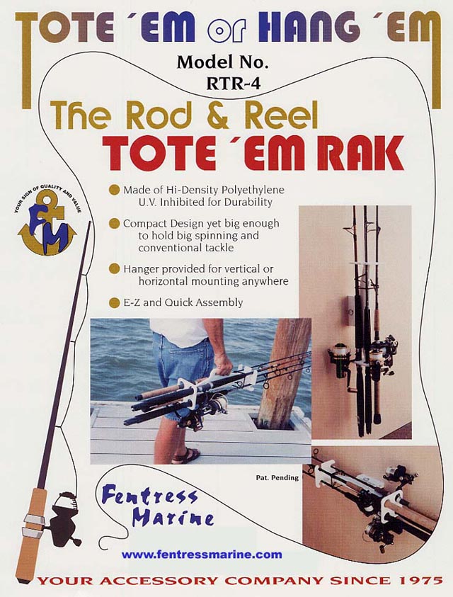 1 Loop Handrail 2 Loop Handrail 3 Loop Handrail 4 Loop Handrail Personalized Rod & Reel Mobile Racks 18 Rod & Reel Capacity 24 Rod & Reel Capacity 32 Rod & Reel Capacity Personalized (add to each of the above) Personalized (add to each of the above) See Brochure Roof Rak Two Rod & Reel Capacity The Rod & Reel Tote'Em Rak Complete Unit-with mounting bracket kit Tote'Em RAK - without mounting bracket kit Mounting Bracket Kit New Solid Trailer Glide Sliks 12 Feet total 16 Feet total 20 Feet total 24 Feet total 32 Feet total |
